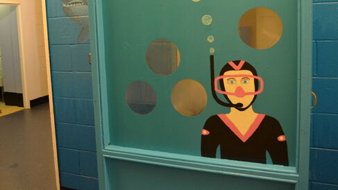 Water does not just feature in its elemental form but is often used metaphorically to describe the overall experience of imprisonment and how far removed prisoners feel from the outside world. Interestingly, many prisoners use water metaphors to describe how they feel – like ‘submerged’ or ‘in a well without a ladder’. Others use metaphors like ‘far out at sea’ or ‘like being in a boat on the sea without oars, you have no control, just drifting away..’ (field notes, Norway, KM). One painted example from HMP Littlehey on a wing shows this ‘depth’ really well where the phone booth is painted under water with a diver and circling sharks around it (see pictures). The importance of water can also continue beyond the immediate time of detention as written in our field notes: ‘The first thing he did when they got home was to take a very long shower, and he washed all his clothes.’ (KM, Norway).